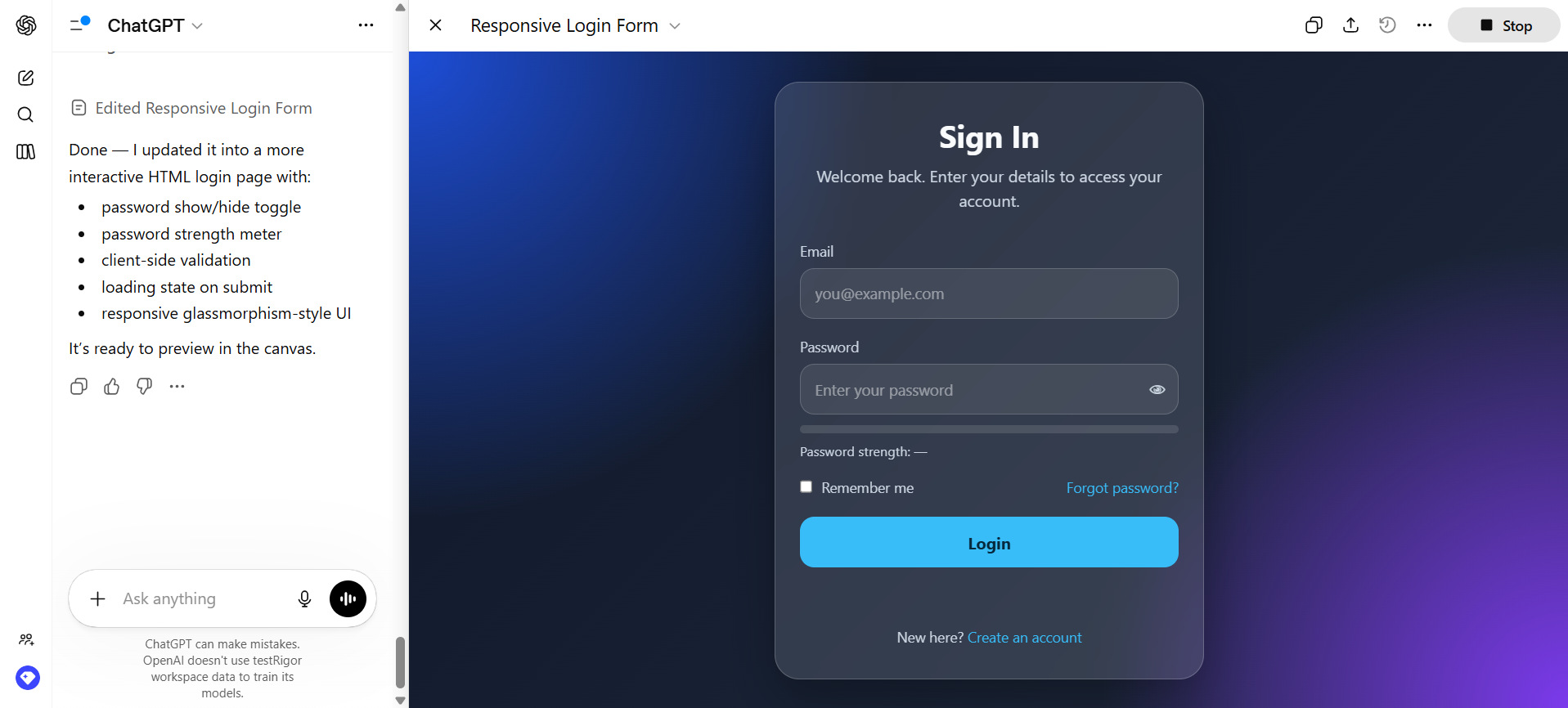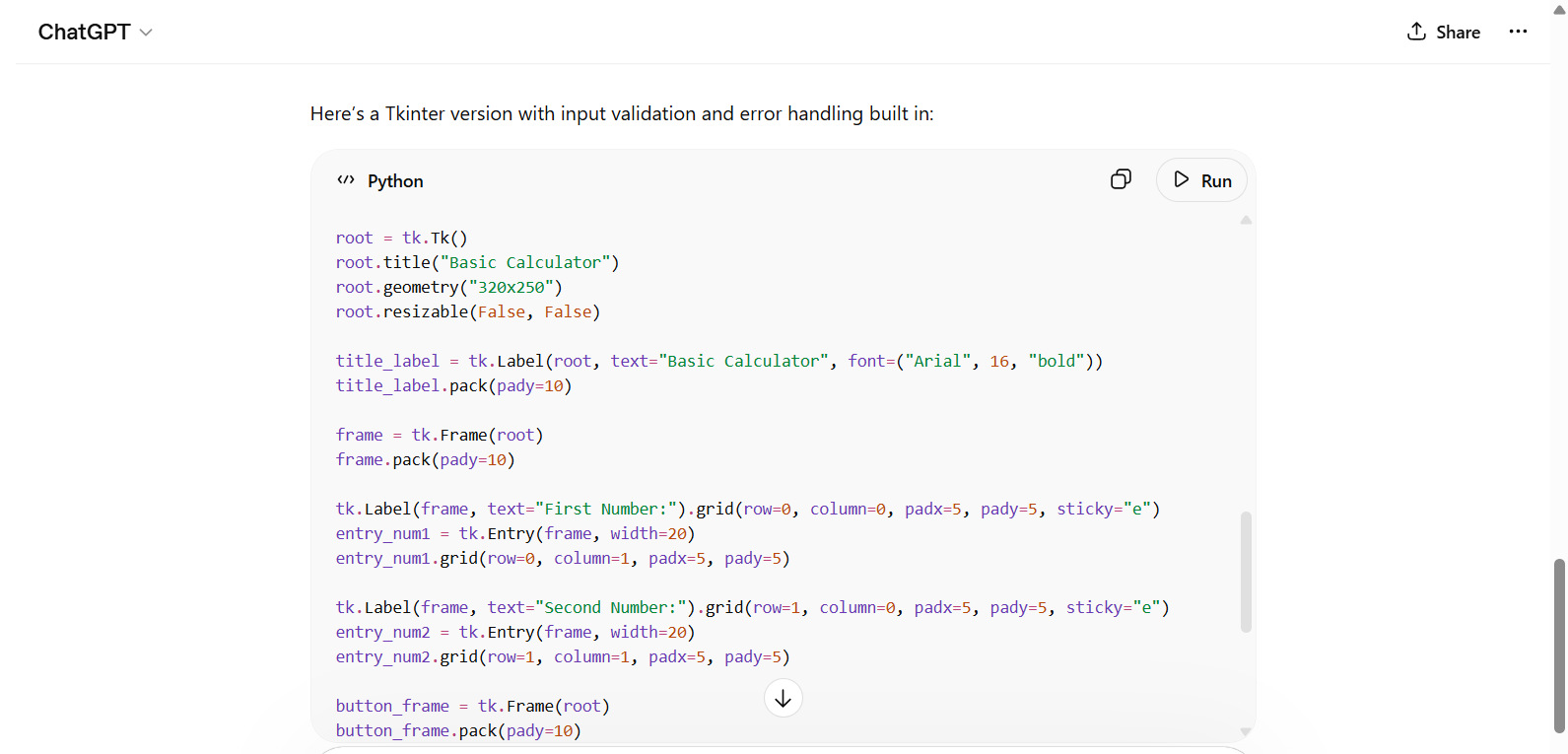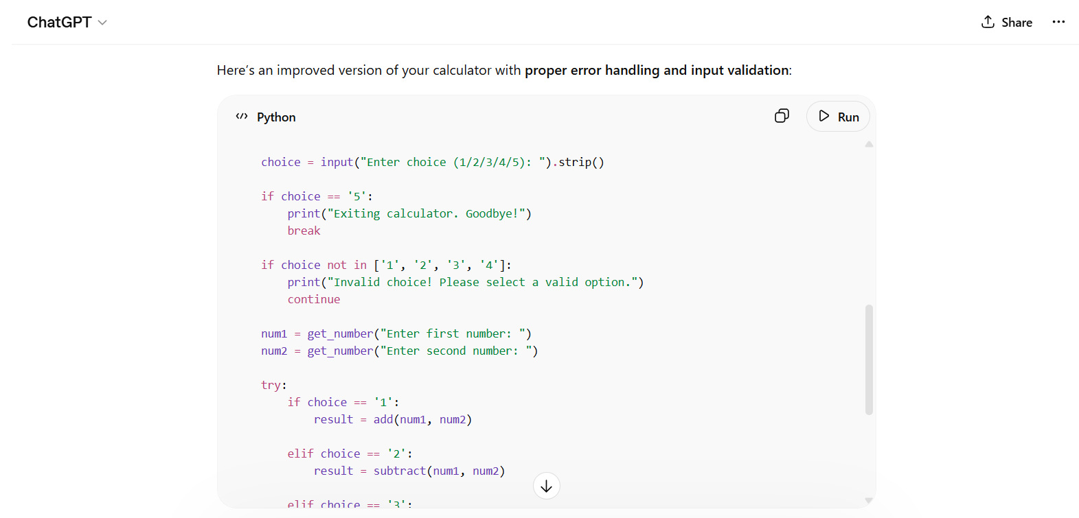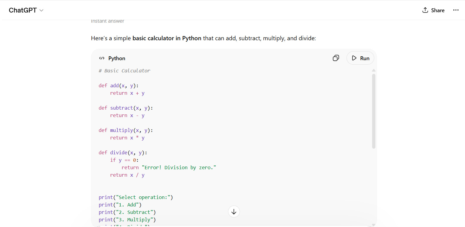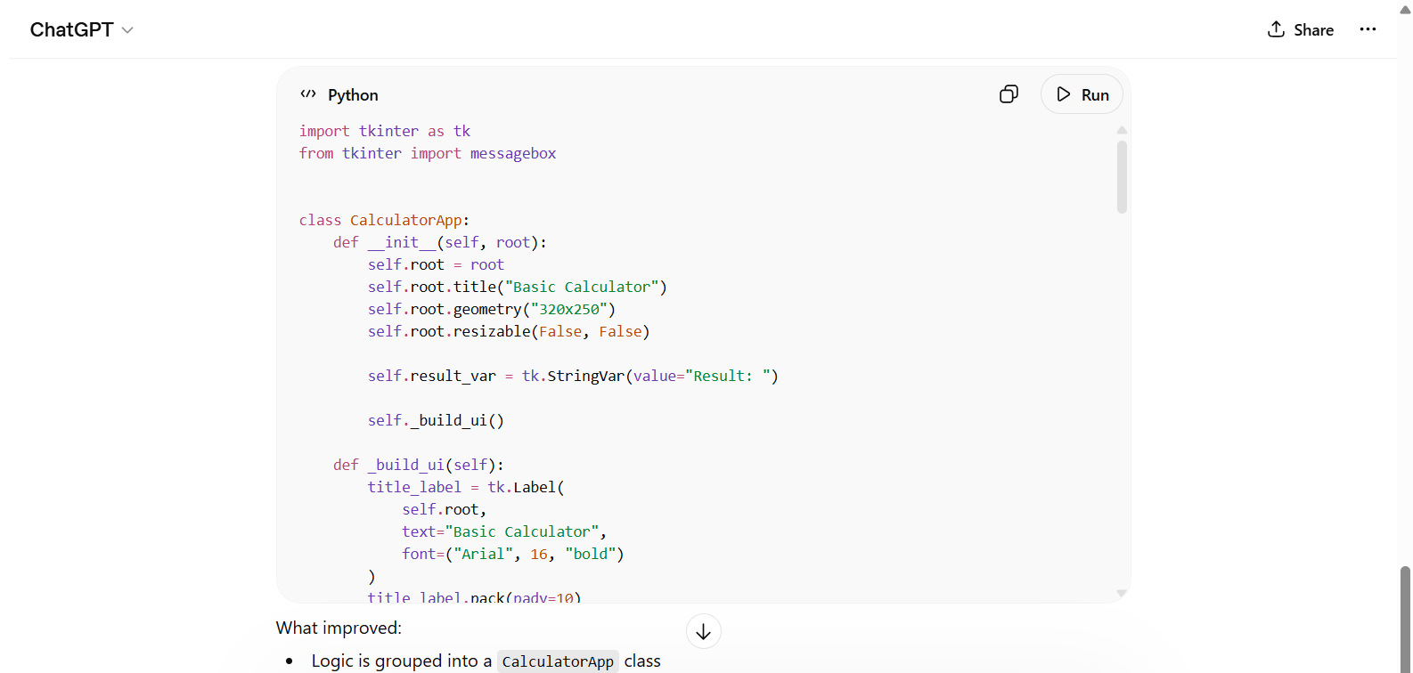 Here’s a real-world example of generating and optimizing a calculator app that demonstrates how developers use ChatGPT. The entire calculator app is ready in four steps, as shown below.