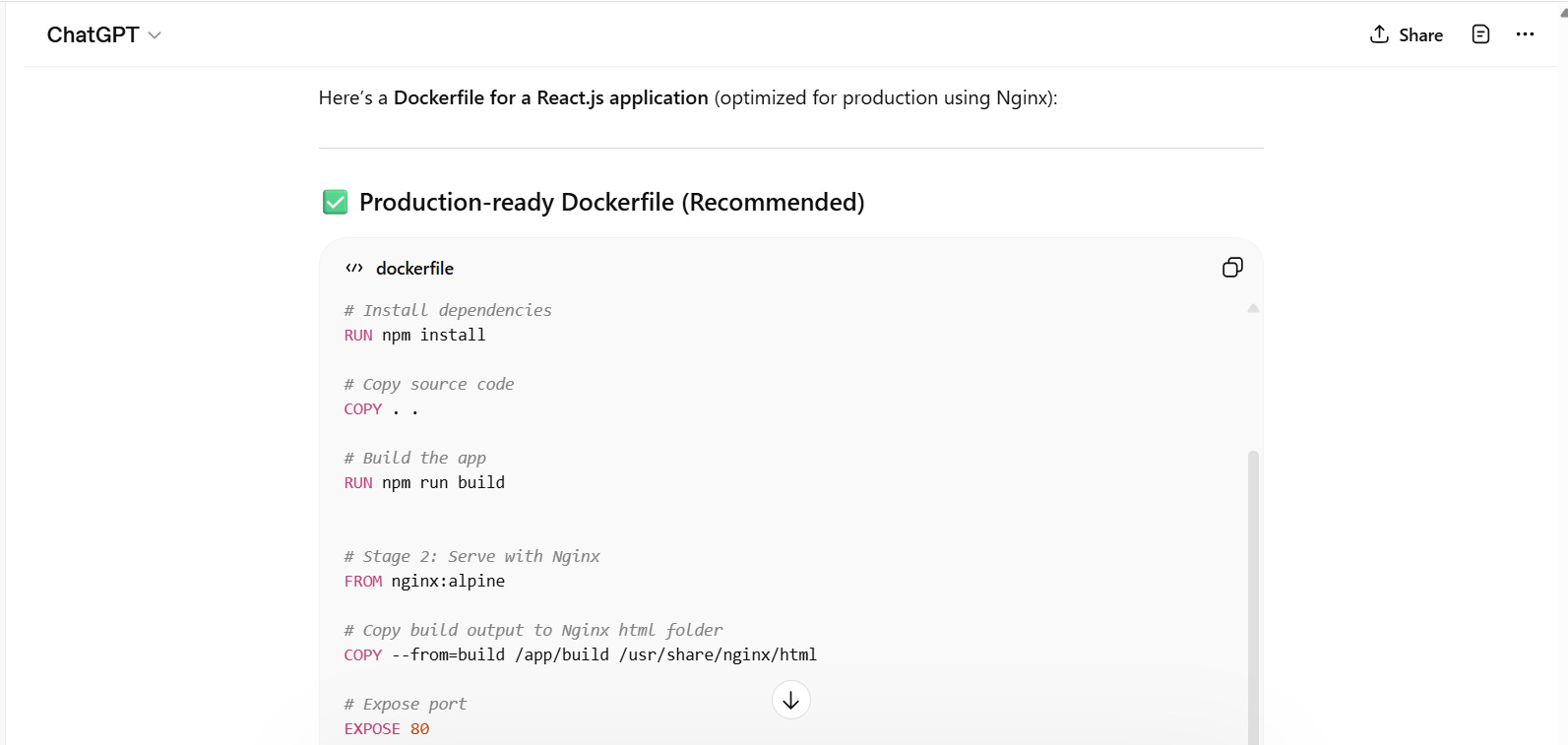 ChatGPT generates high-quality code, but it may not always be perfect. You should always review, test, and validate the code before using it in production.