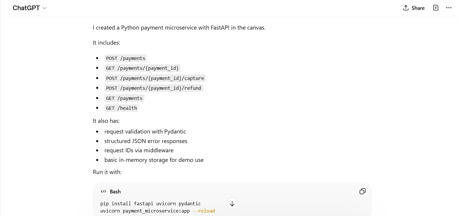 Apart from the prompt examples above, ChatGPT can handle more advanced prompts for experienced developers, such as full-stack features, system design, or even microservices.