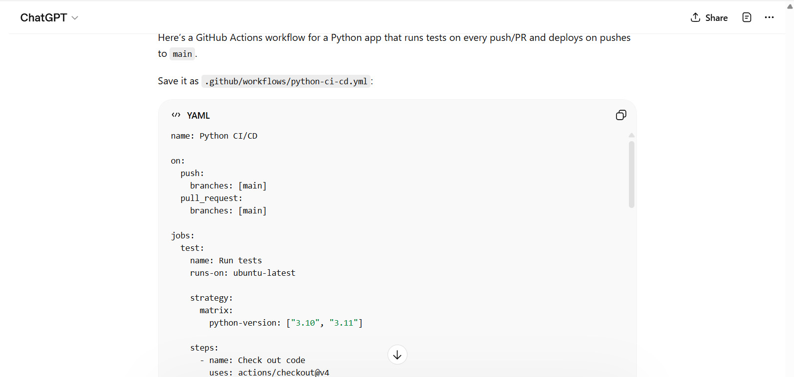 Provide a GitHub Actions workflow for testing and deploying a Python app.