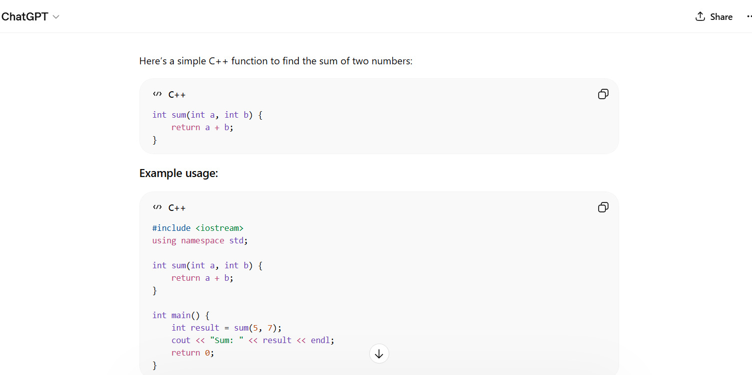 These prompts are ideal for beginners who intend to learn programming languages or coding. In this type, you provide simple prompts to the ChatGPT to write a simple function, explain a basic construct, or demonstrate any simple concept like loops, conditional statements, or file I/O.