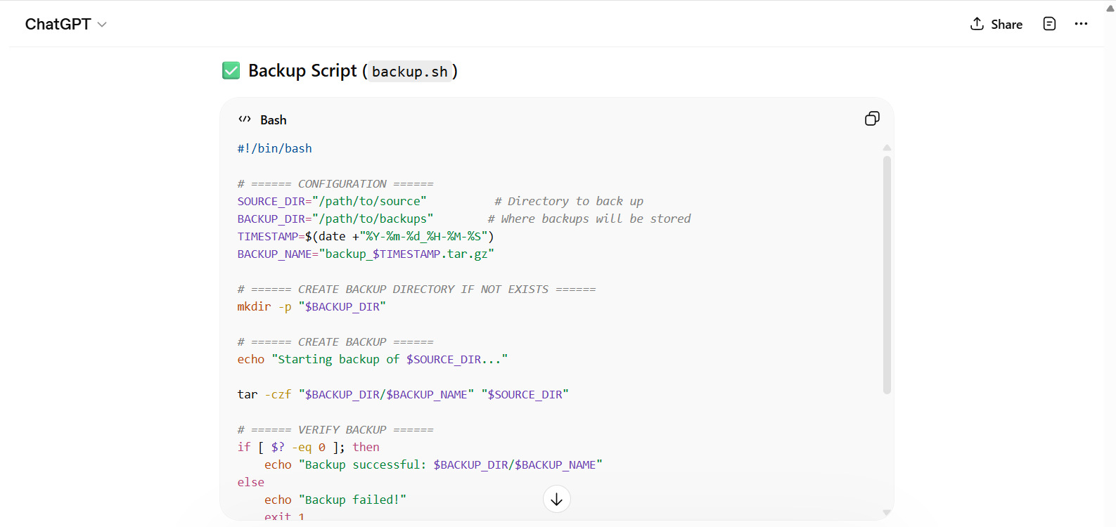 Write a general shell script to automate backups of a directory.