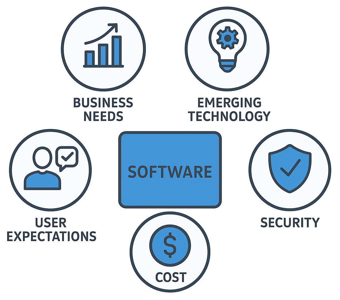 - Changing Business Needs: Organizations grow, implement new models, and optimize procedures. Applications need to change to reflect these developments. Software can easily become misaligned with business strategy if it isn’t updated on a regular basis.