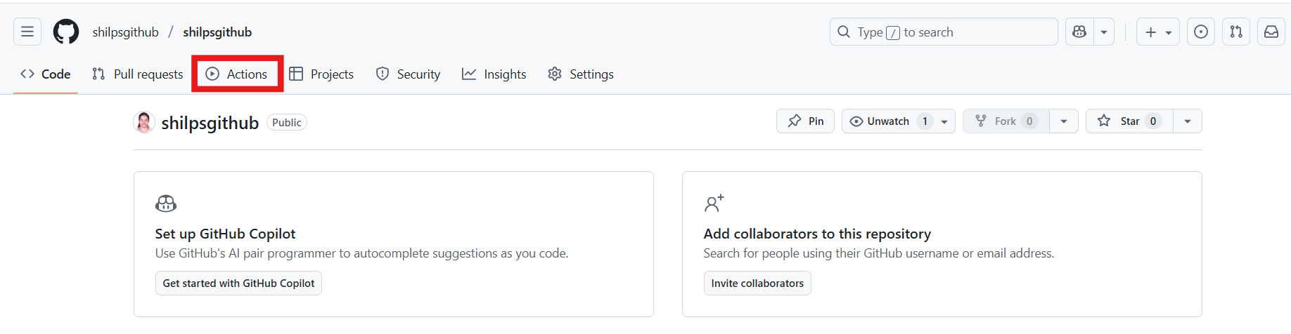To create a GitHub Action using GitHub UI, first go to the GitHub repository where you want to create your GitHub Action.