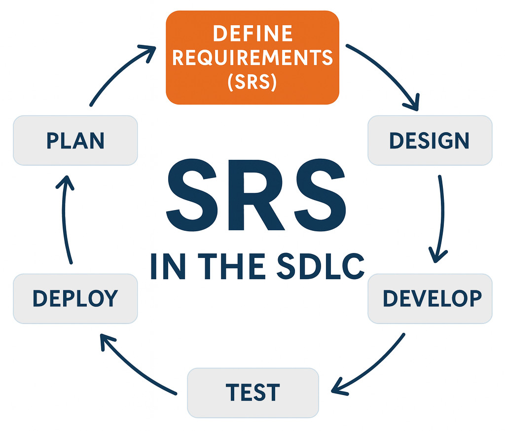 - Later stages, like coding, testing, deployment, and maintenance, all make reference to the SRS to ensure accuracy and compliance.