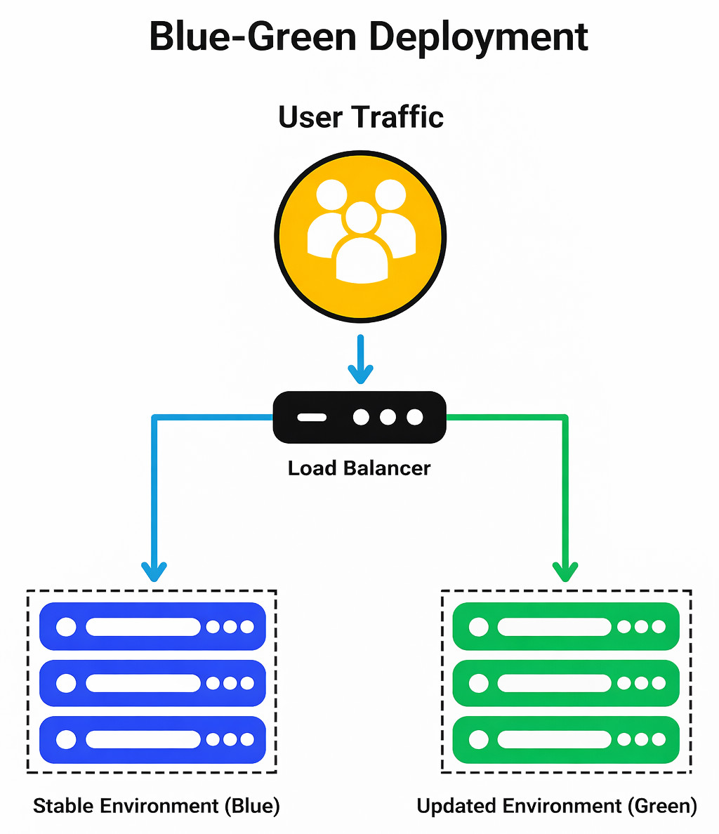 - Pre-deployment testing: The new version should be validated in the green environment (blue-green deployment) or staging before being released. This ensures that it passes end-to-end, integration, and unit tests in an environment similar to production.