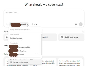 Select the repository you want to work on from the dropdown list, and you are ready to start your first task.