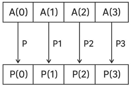 - Create an array P of the same size as A.