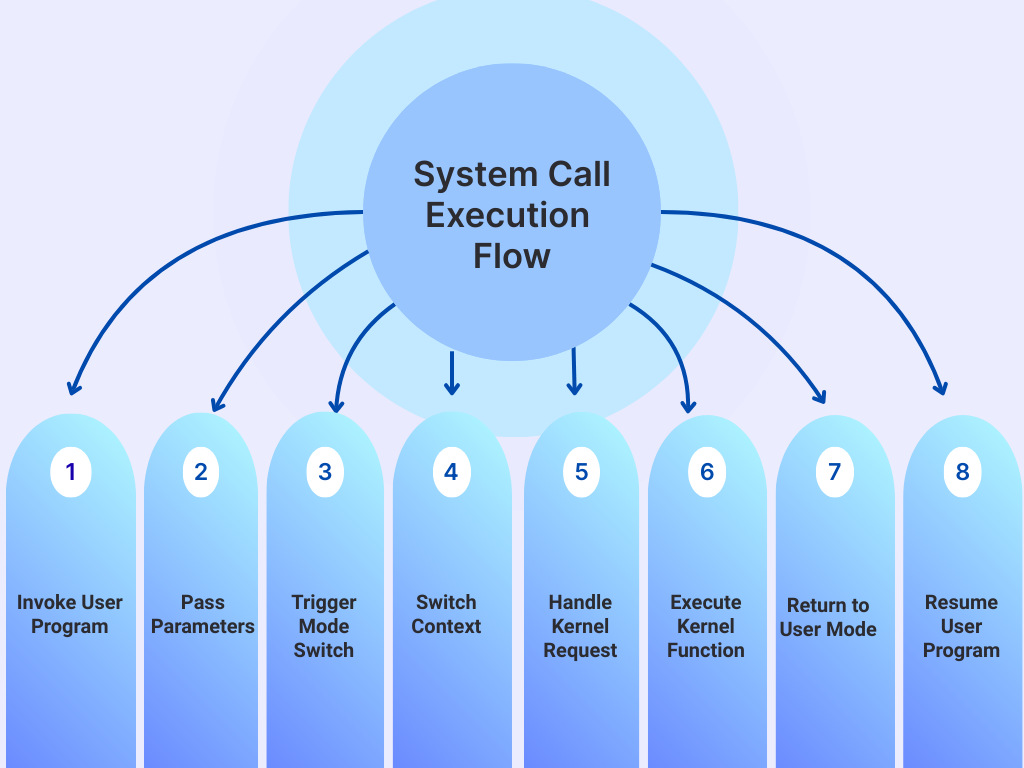 - Return to User Mode: Once the kernel operation is complete, it places any return values (e.g., data read, a success/error code) into a specified register. The CPU then performs the reverse operation using an instruction like