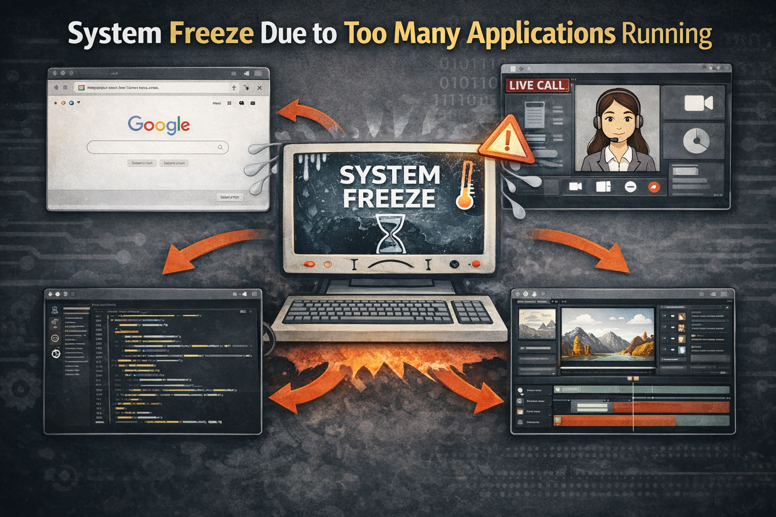 - System Freezes or Crashes: Sometimes the entire system may become unresponsive due to thrashing. This is an extreme case and usually occurs when too many processes are being executed in a system.